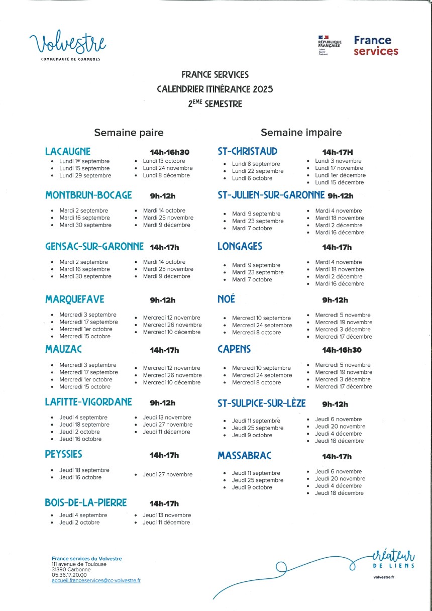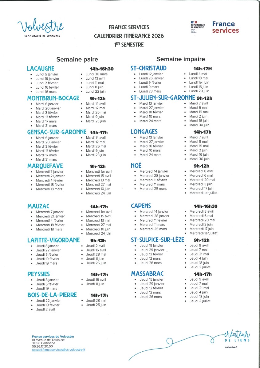 Ci-dessous le calendrier des permanences sur l'ensemble du Volvestre :