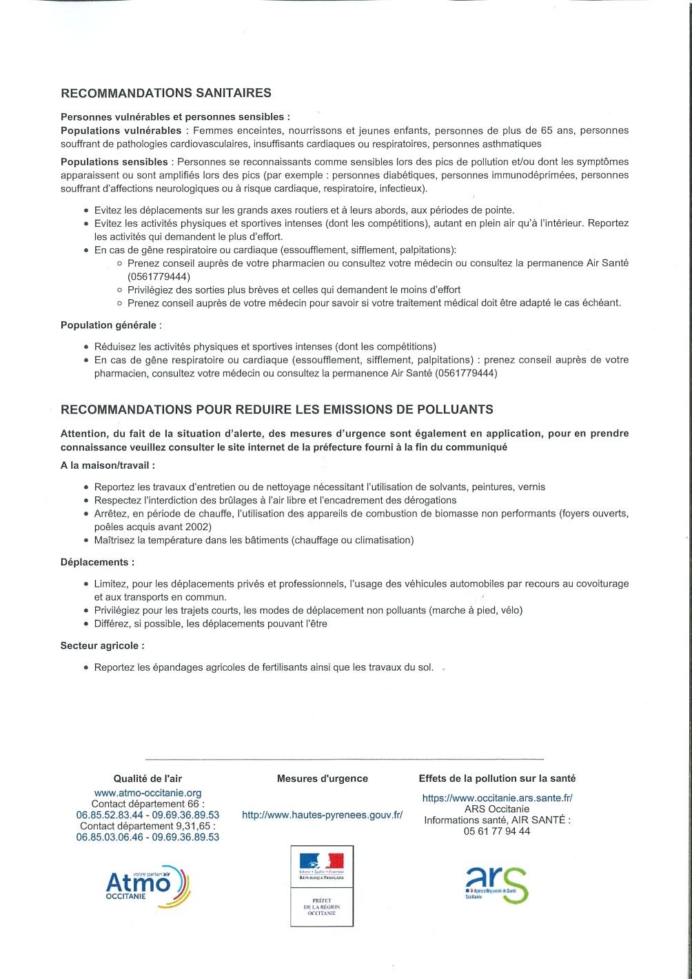 RECOMMANDATIONS SANITAIRES ET COMPORTEMENTALES